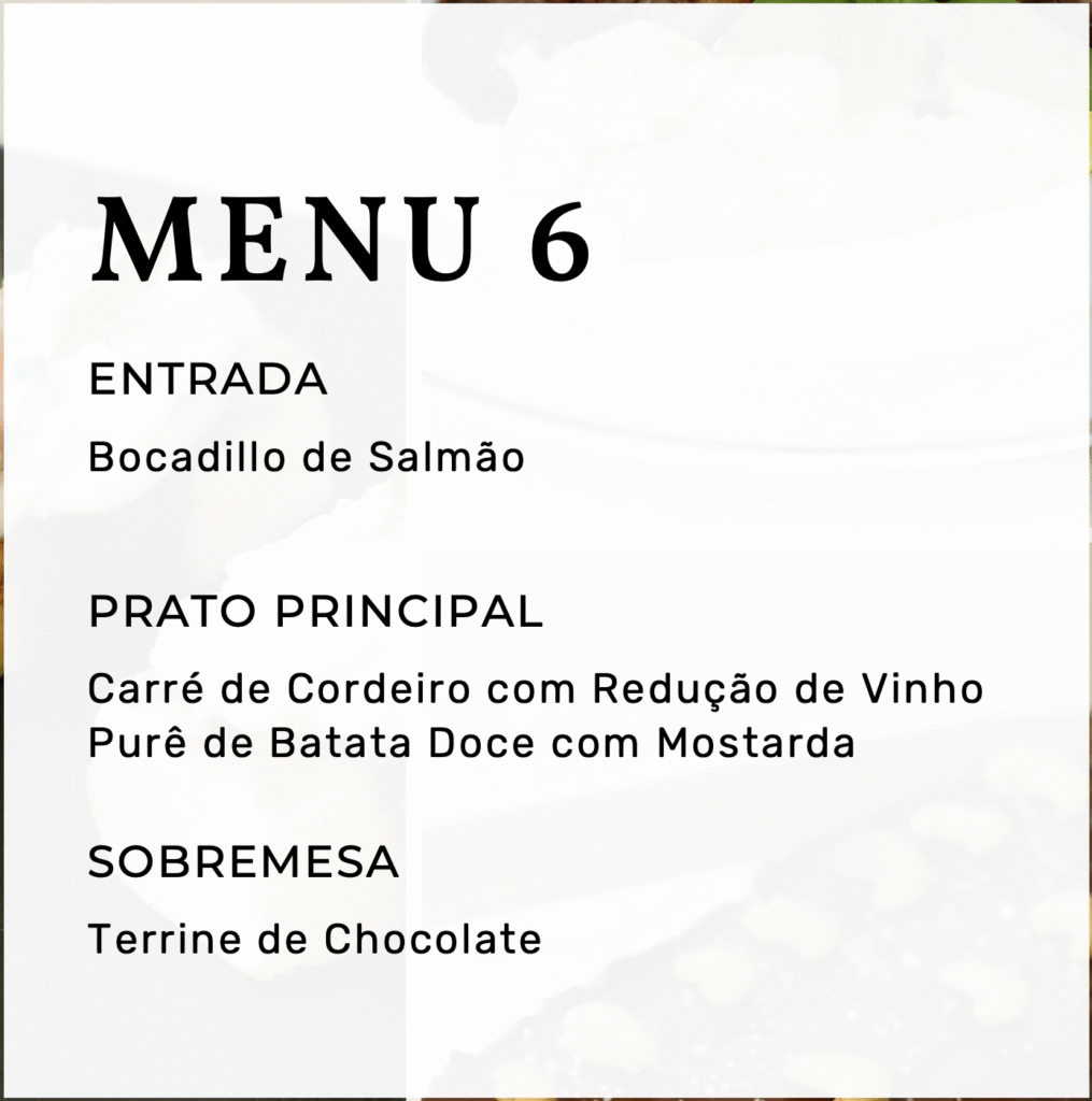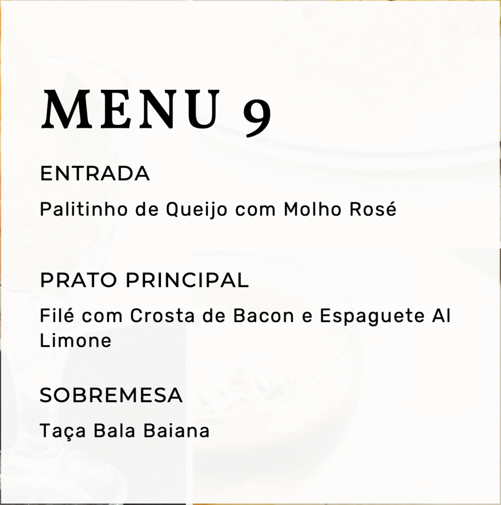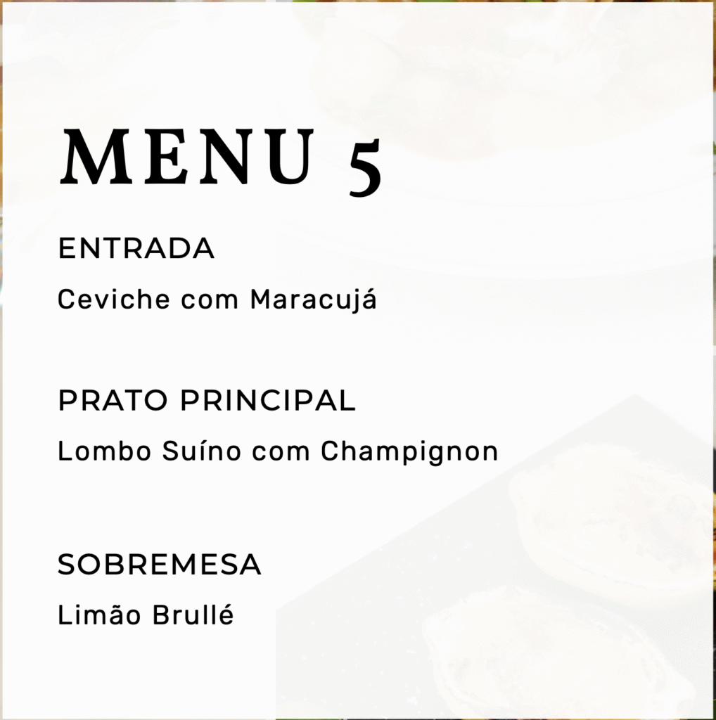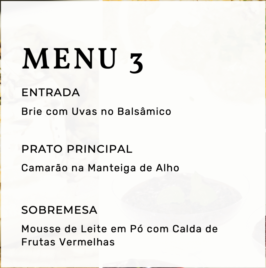Aprenda 10 menus autorais (entrada, prato principal e sobremesa) para qualquer ocasião.