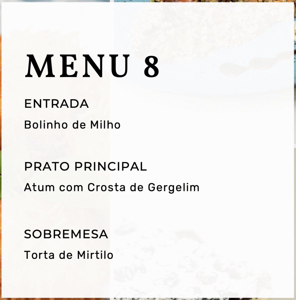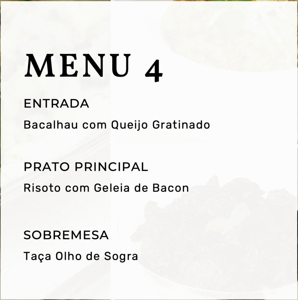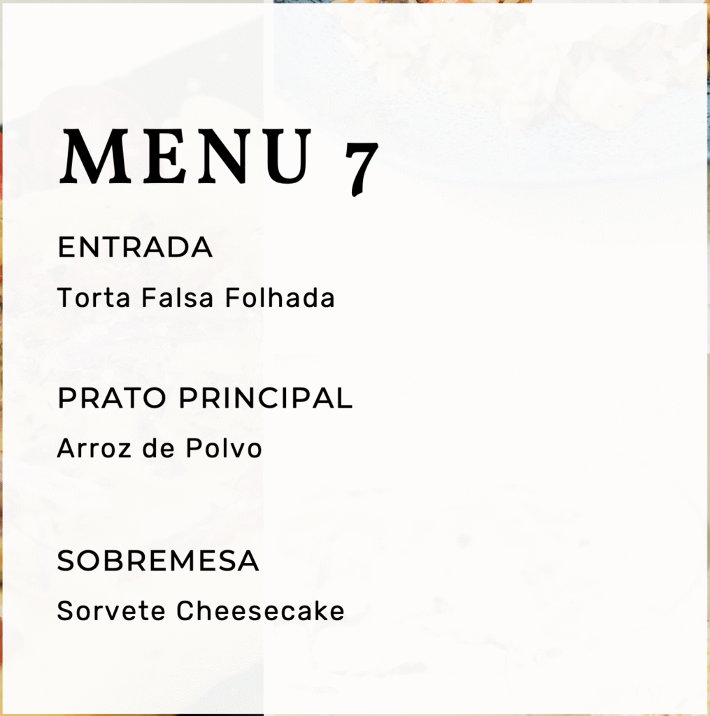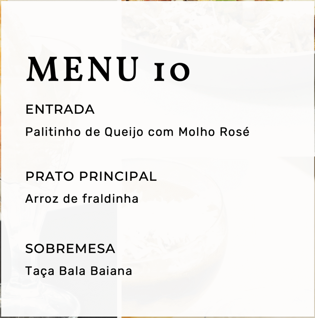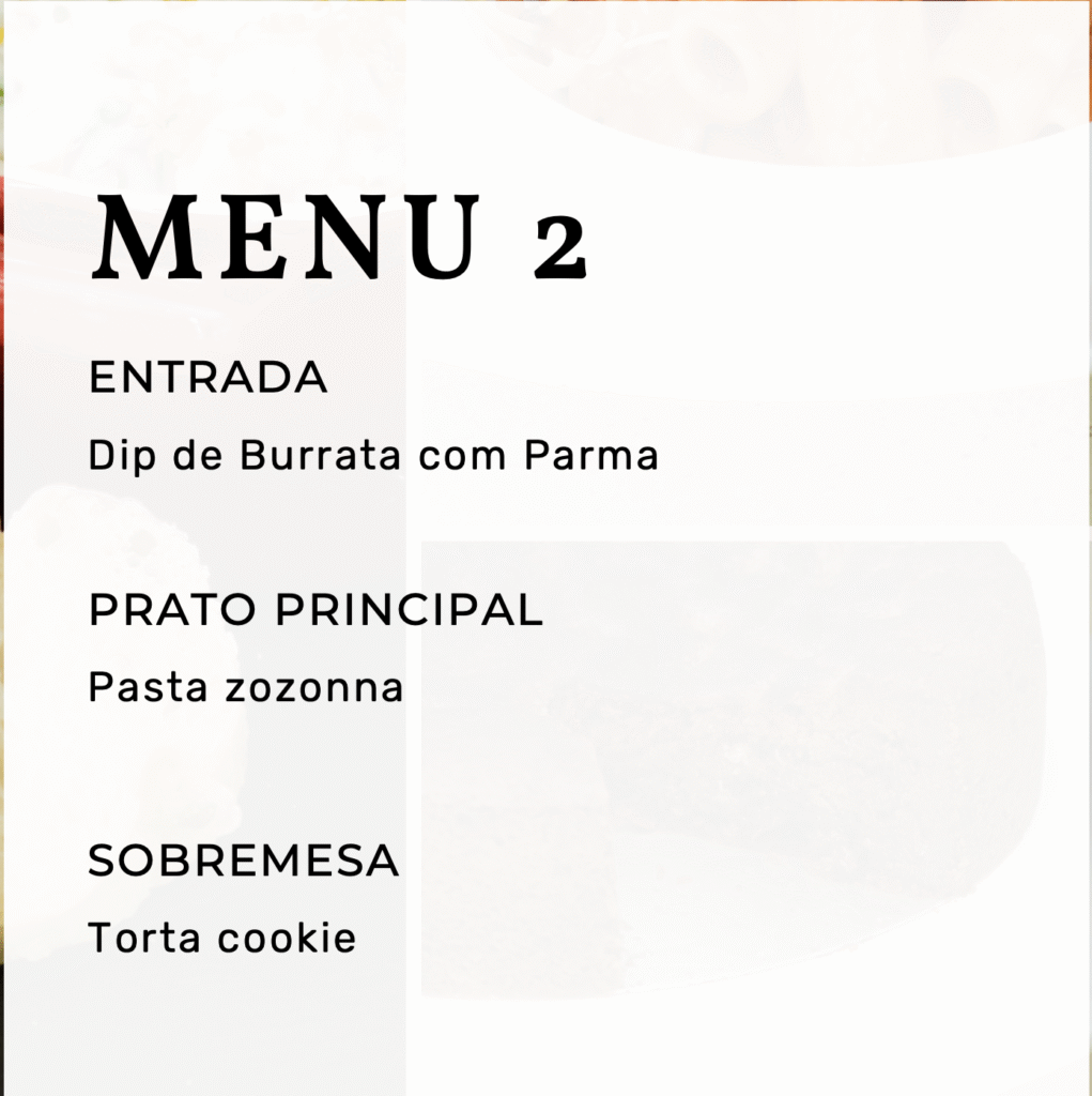 Aprenda 10 menus autorais (entrada, prato principal e sobremesa) para qualquer ocasião.